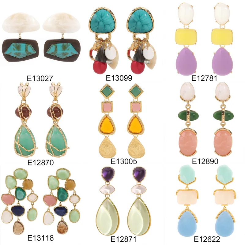 Wholesale 1 Pair IG Style Geometric Water Droplets Alloy Resin Drop Earrings