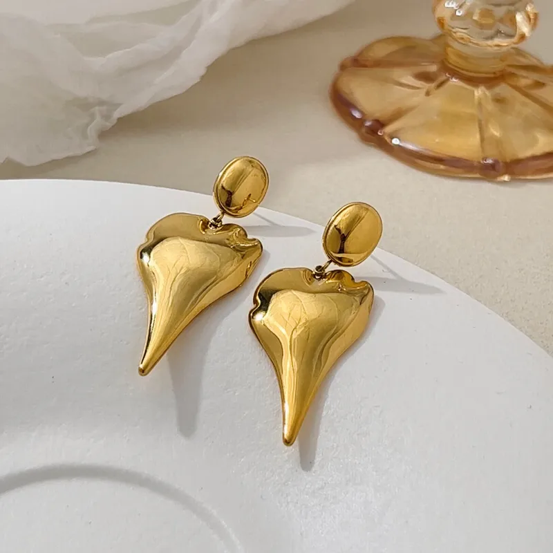 Wholesale 1 Pair Modern Style Classic Style Geometric Heart Shape Plating 304 Stainless Steel Drop Earrings