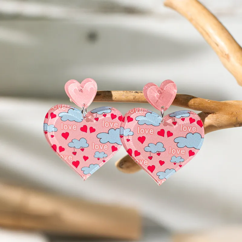 1 Pair Retro Letter Heart Shape Polishing Arylic Drop Earrings