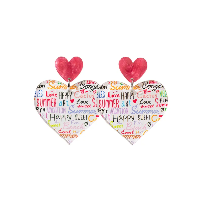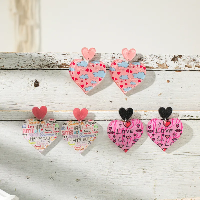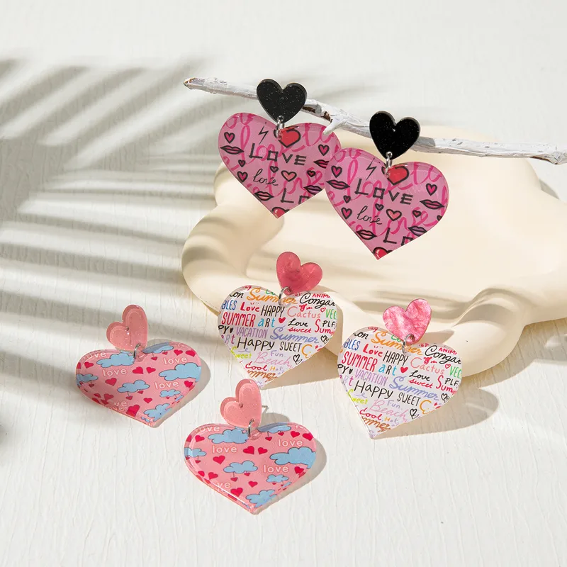 Wholesale 1 Pair Retro Letter Heart Shape Polishing Arylic Drop Earrings