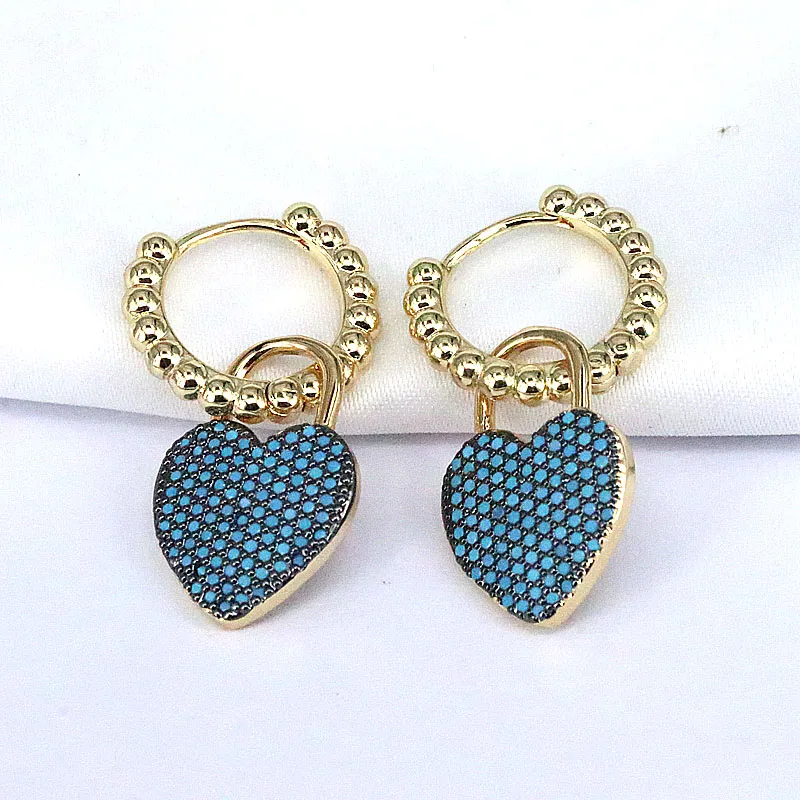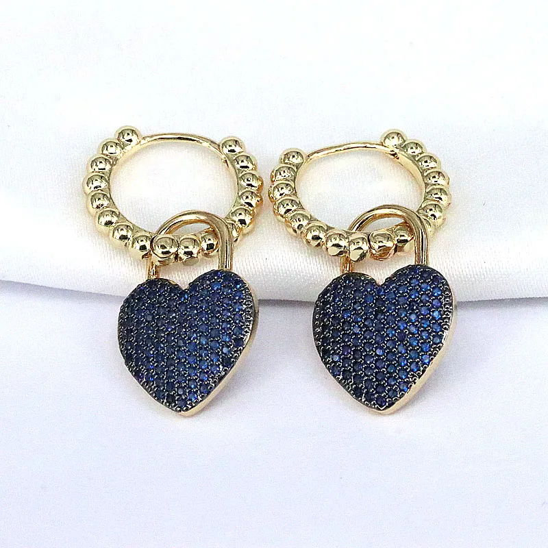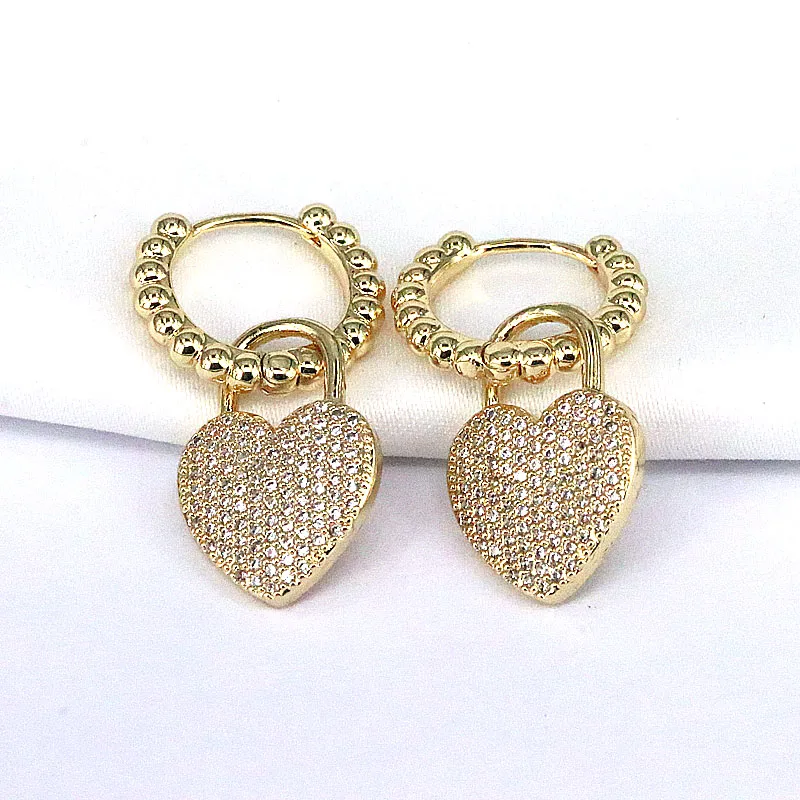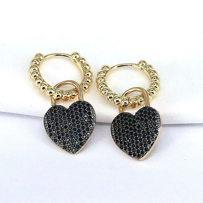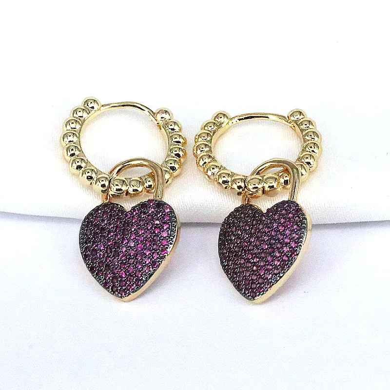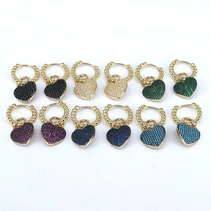 Wholesale 1 pair retro heart shape copper plating inlay zircon drop earrings