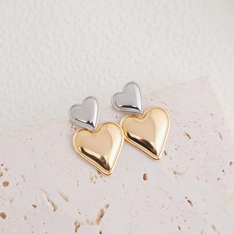 1 Pair Romantic Sweet Simple Style Heart Shape Mixed Metal 304 Stainless Steel Drop Earrings Ear Studs