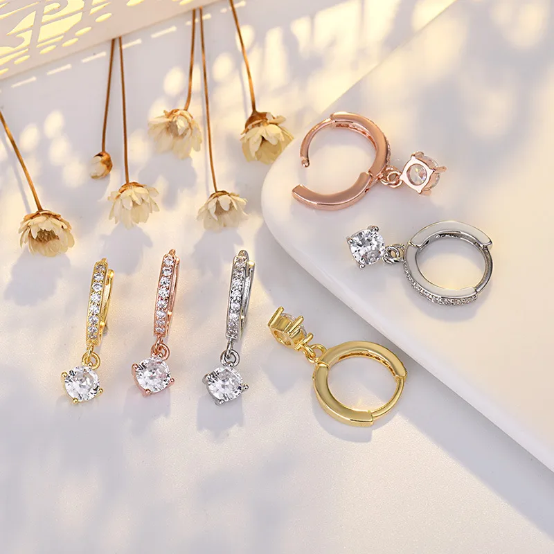 Wholesale 1 pair simple style commute round copper inlay zircon drop earrings