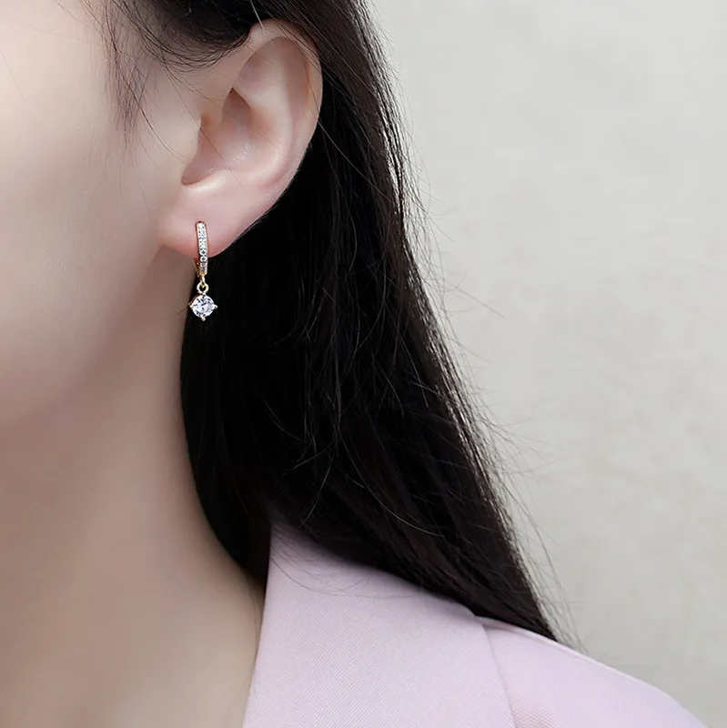 1 Pair Simple Style Commute Round Copper Inlay Zircon Drop Earrings