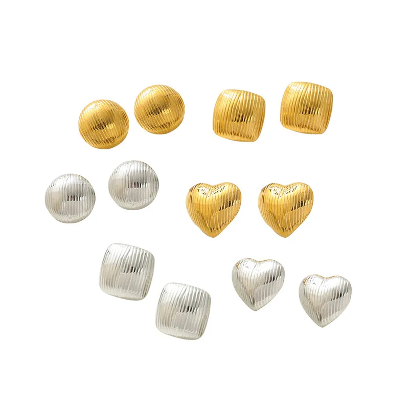 1 Pair Basic Simple Style Round Heart Shape Plating 304 Stainless Steel Ear Studs