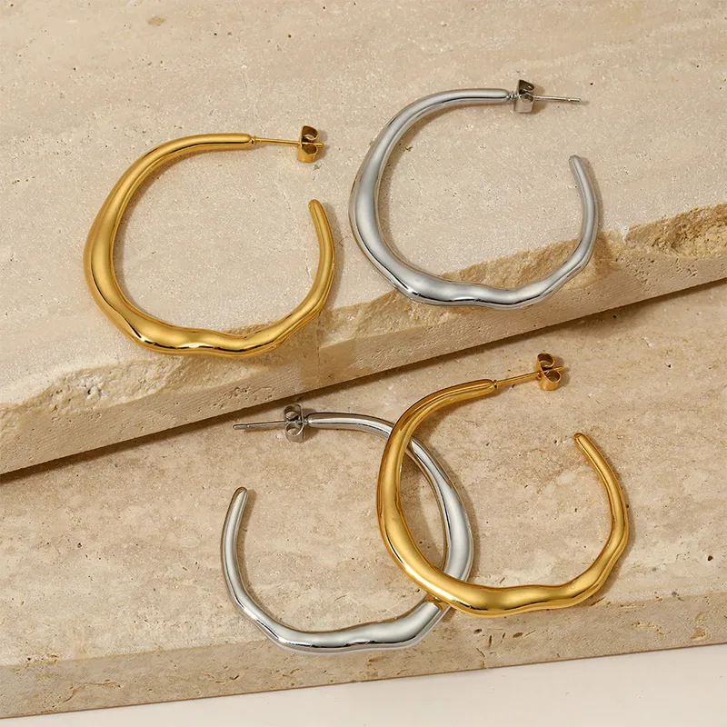1 Pair Simple Style Solid Color Plating 304 Stainless Steel 16K Gold Plated White Gold Plated Gold Plated Hoop Earrings