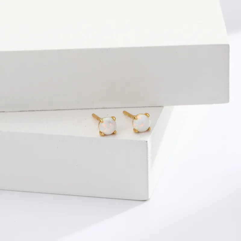 Wholesale 1 Pair Sterling Silver Opal Geometric Ear Studs