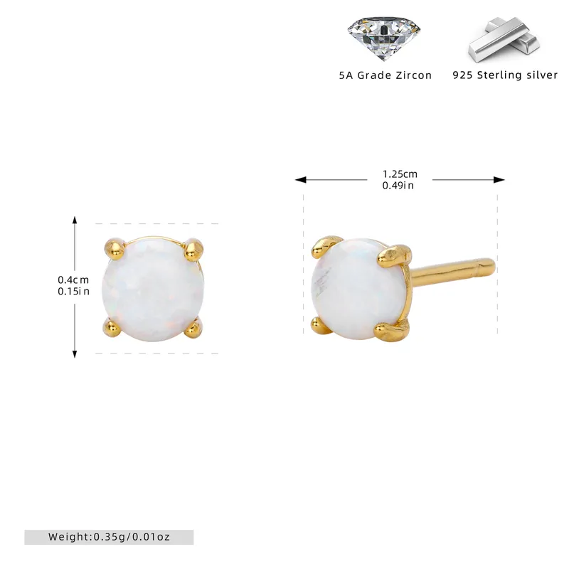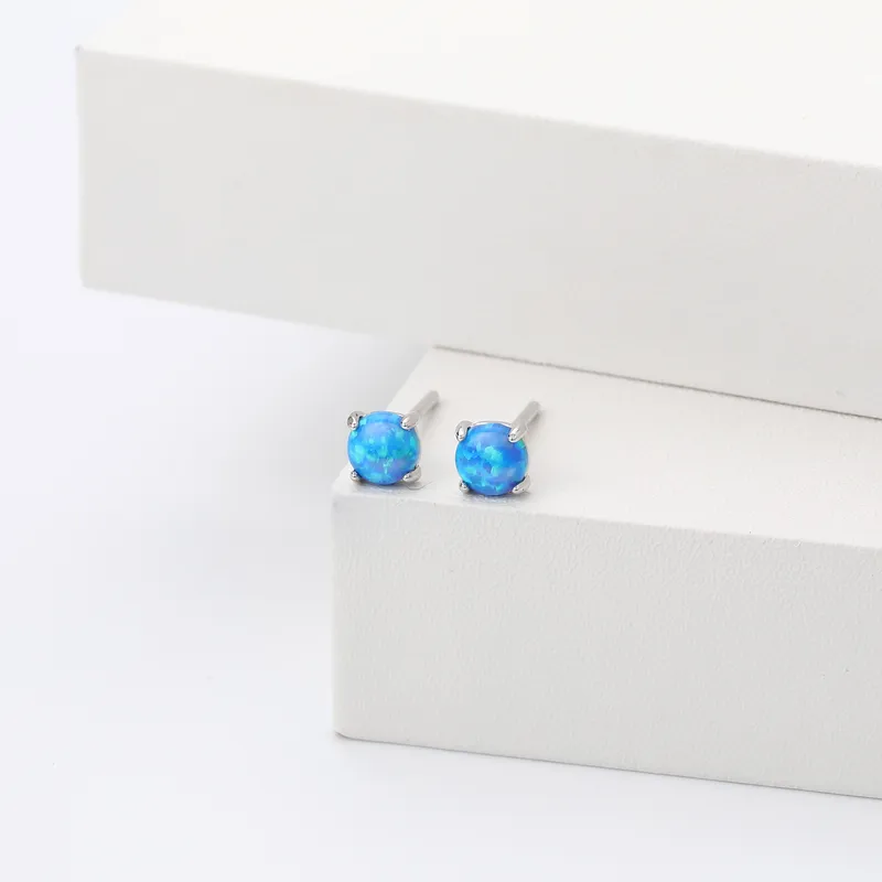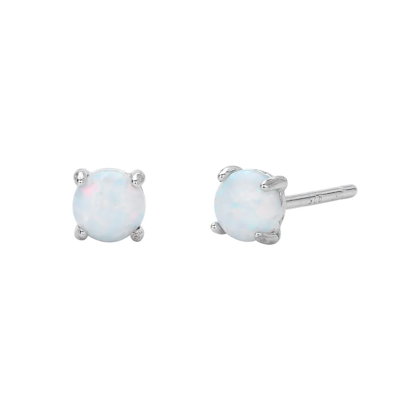1 Pair Sterling Silver Opal Geometric Ear Studs