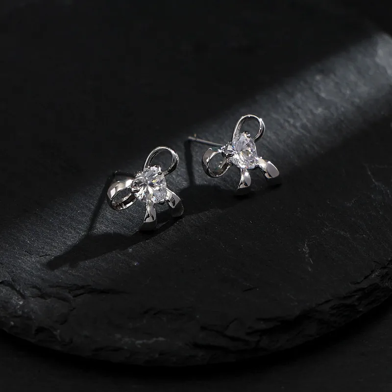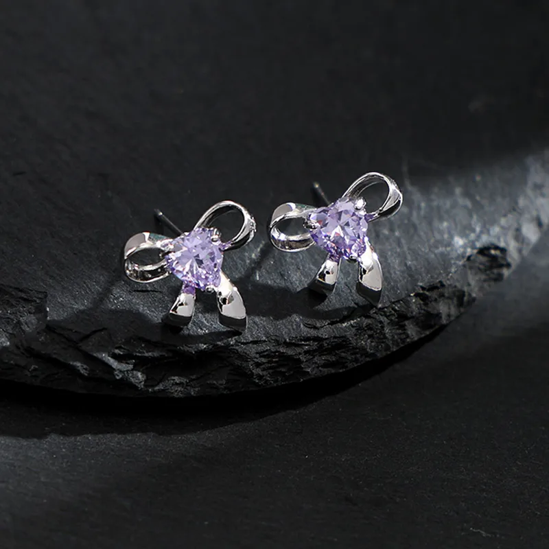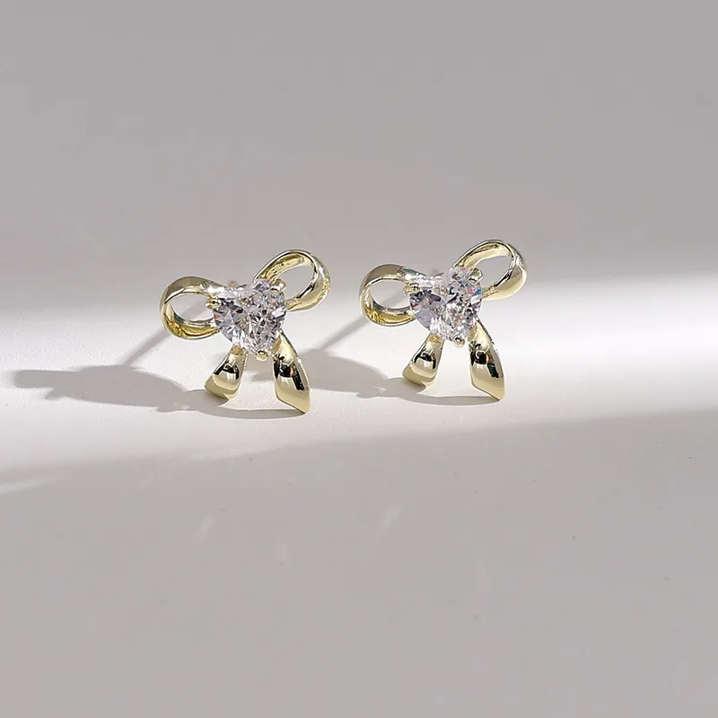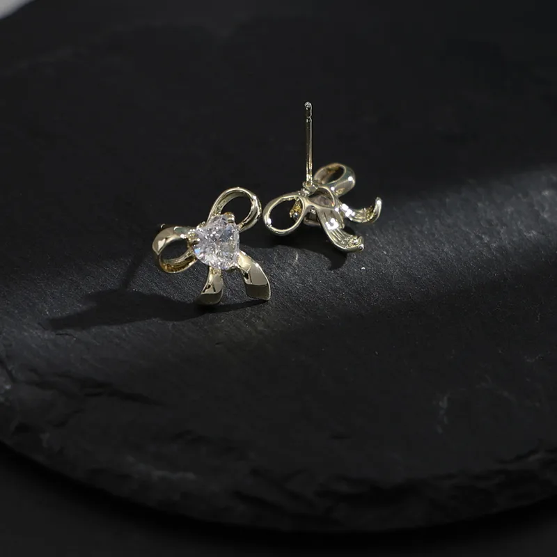 1 Pair Sweet Shiny IG Style Heart Shape Bow Knot Inlay Alloy Zircon Ear Studs