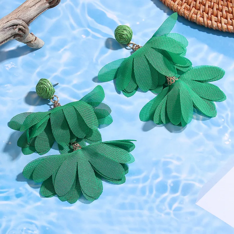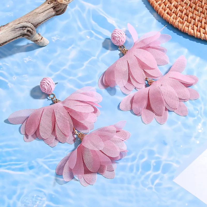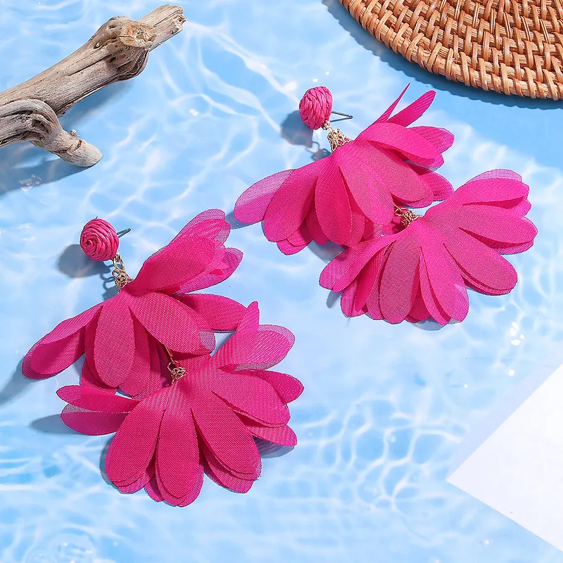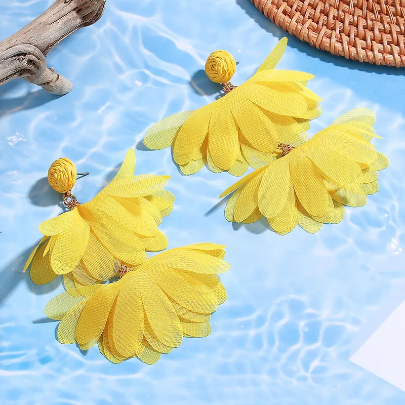 Wholesale 1 Pair Vacation Tropical Modern Style Petal Cloth Drop Earrings