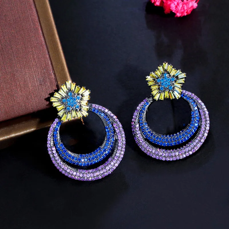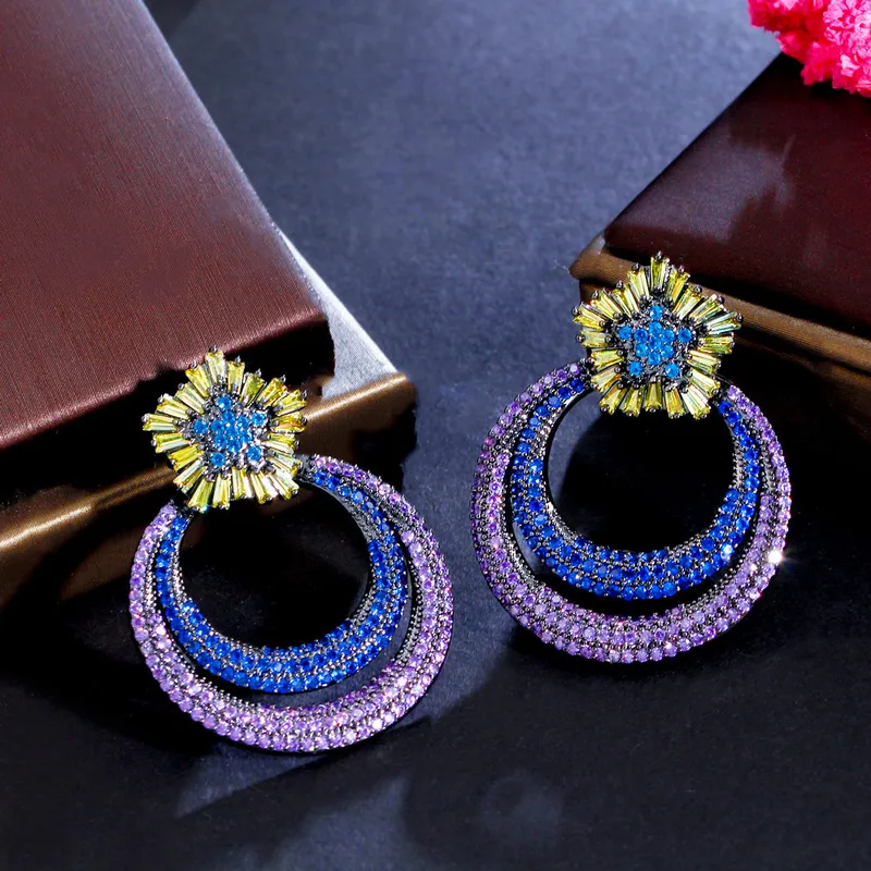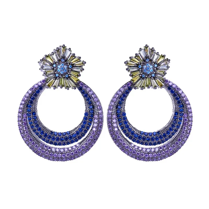 Wholesale 1 pair vintage style round rainbow bow knot plating inlay copper zircon 14k gold plated rhodium plated drop earrings