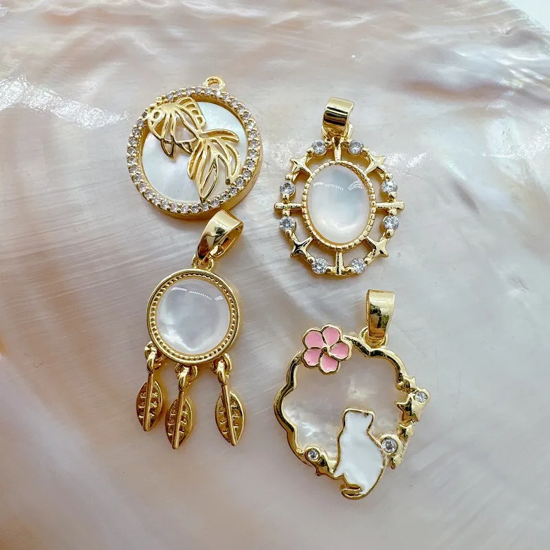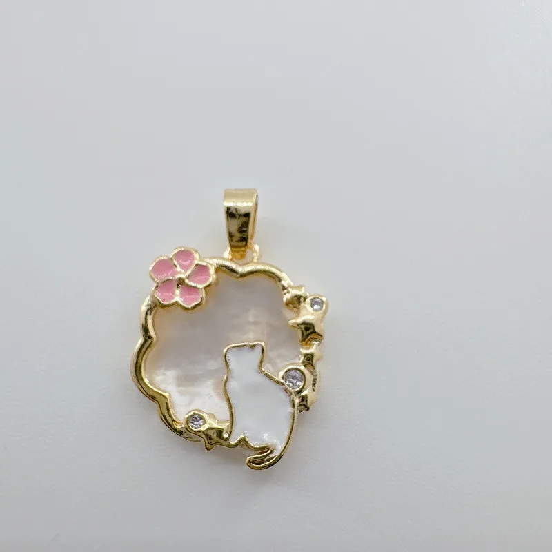 1 Piece 12mm Copper Shell Dreamcatcher Cat Flower Pendant