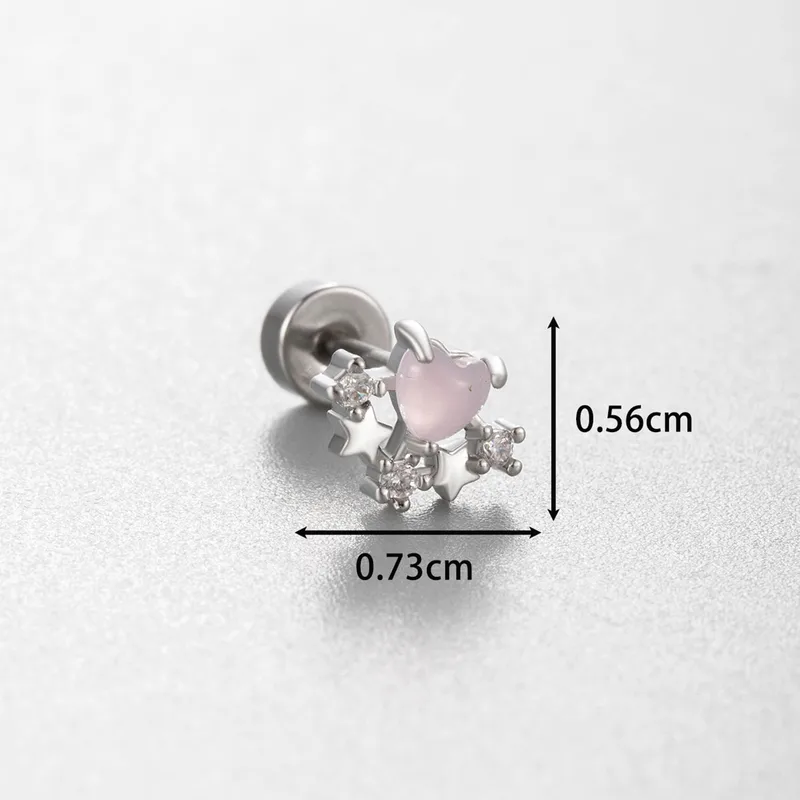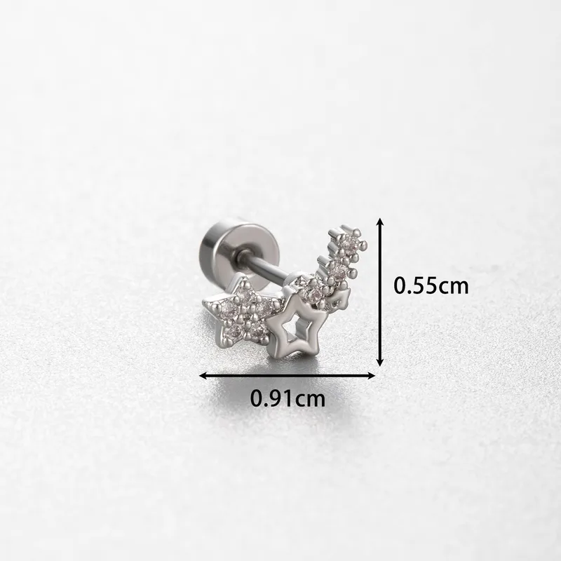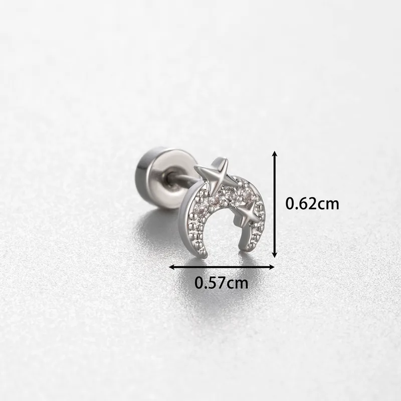 1 Piece Casual Shiny IG Style Star Moon Heart Shape Inlay Copper Zircon Cartilage Earrings