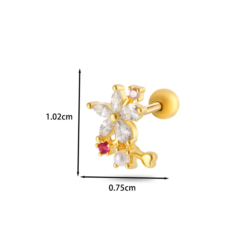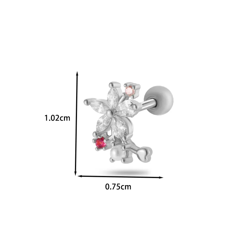 Wholesale 1 Piece Ear Cartilage Rings & Studs Casual Classic Style Korean Style Flower Bow Knot Copper Inlay Zircon