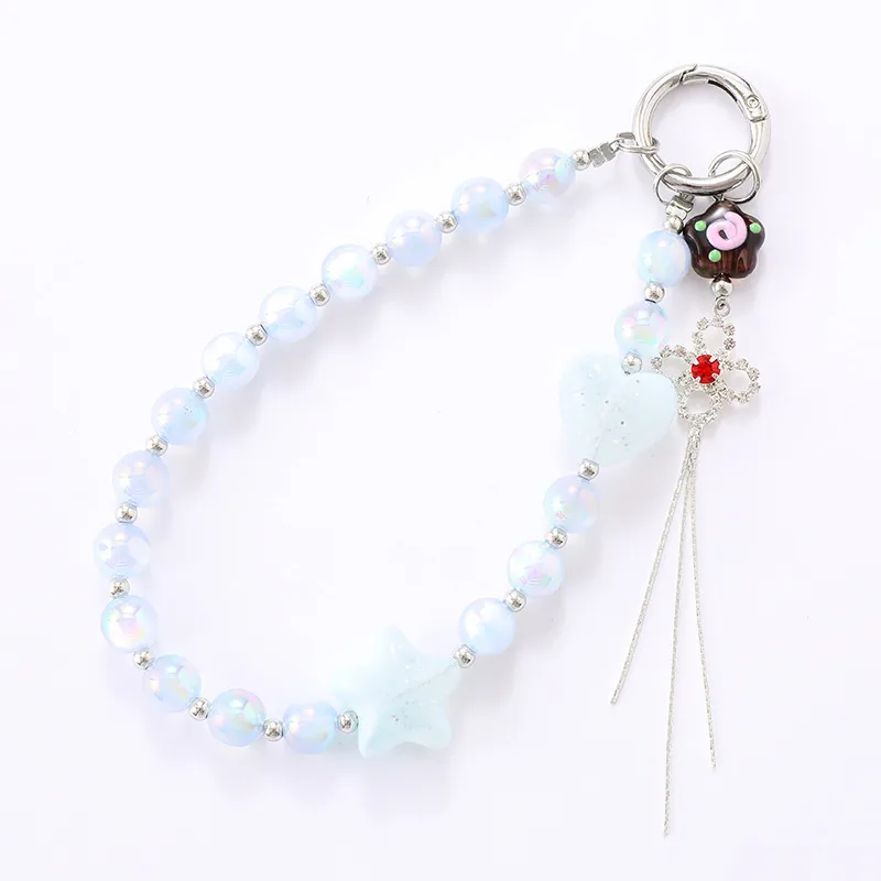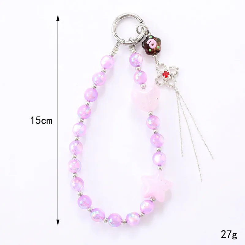 Wholesale 1 Piece Elegant Lady Star Heart Shape Beaded Beaded Bag Pendant Mobile Phone Chain Keychain