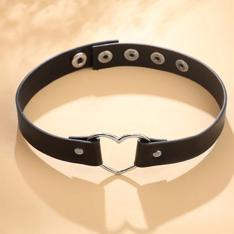 Wholesale 1 piece fashion heart shape pu leather alloy plating women's choker