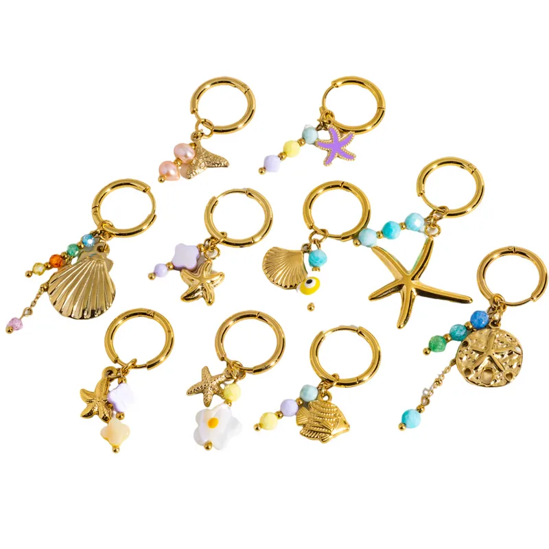 Wholesale 1 Piece Marine Style Starfish Flower Shell Beaded Plating 304 Stainless Steel Drop Earrings