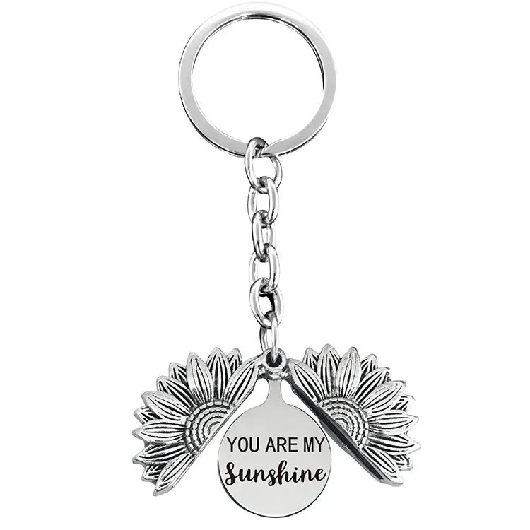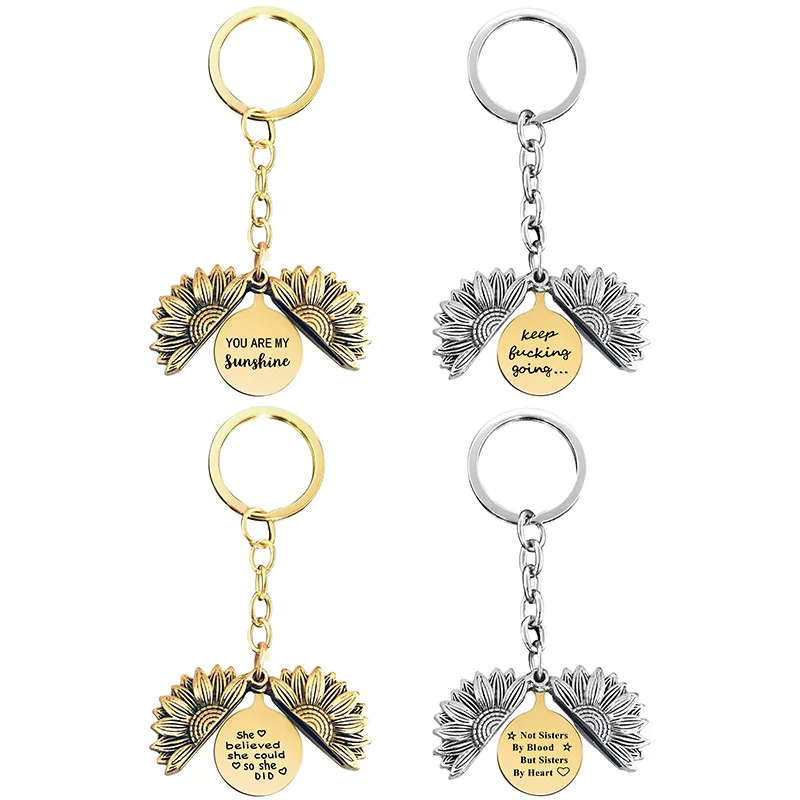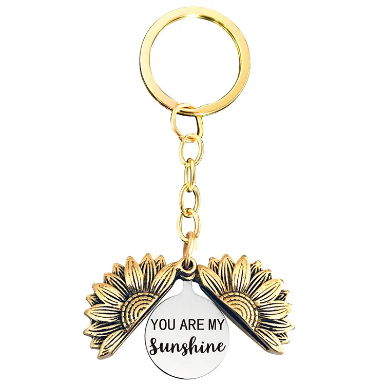 Wholesale 1 piece retro letter plant flowers metal plating keychain