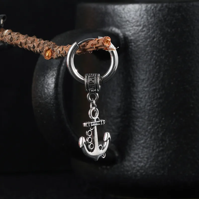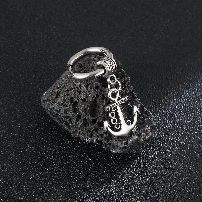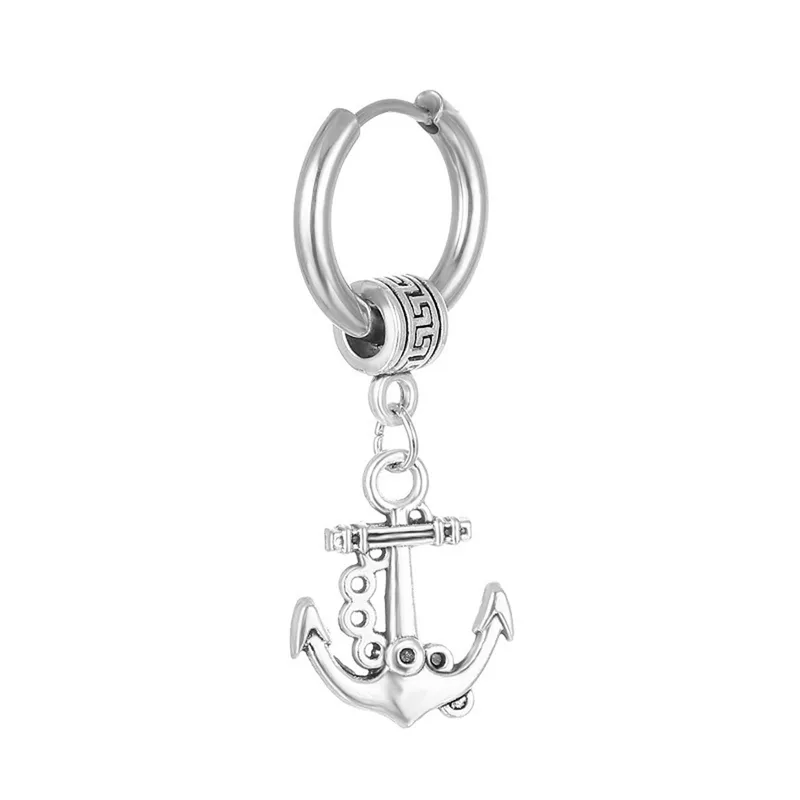 Wholesale 1 piece retro punk anchor plating stainless steel drop earrings