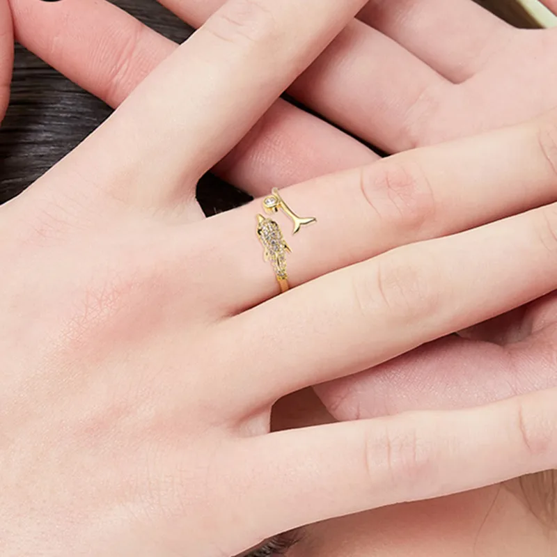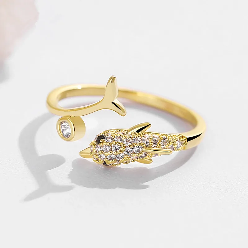 Wholesale 1 piece simple style dolphin copper inlay zircon open ring
