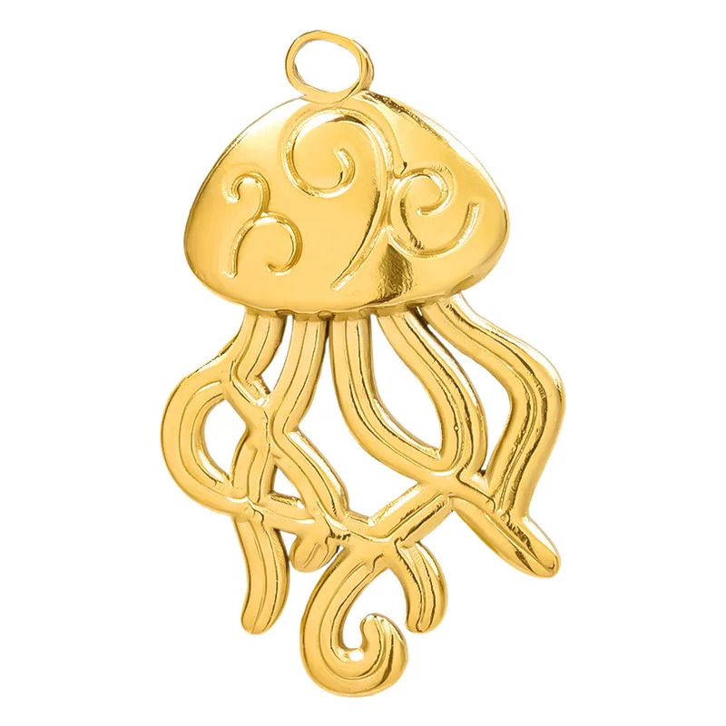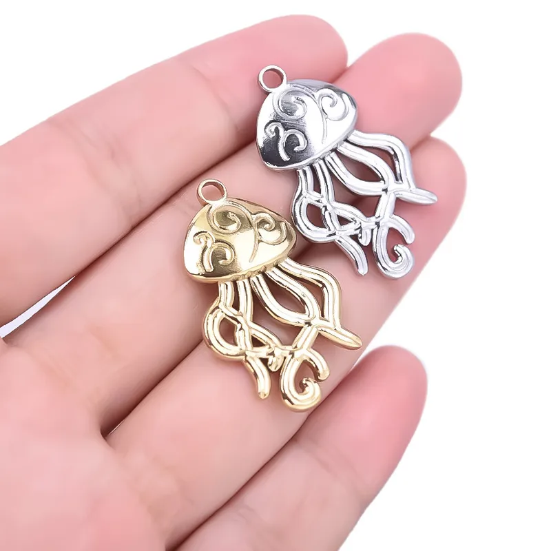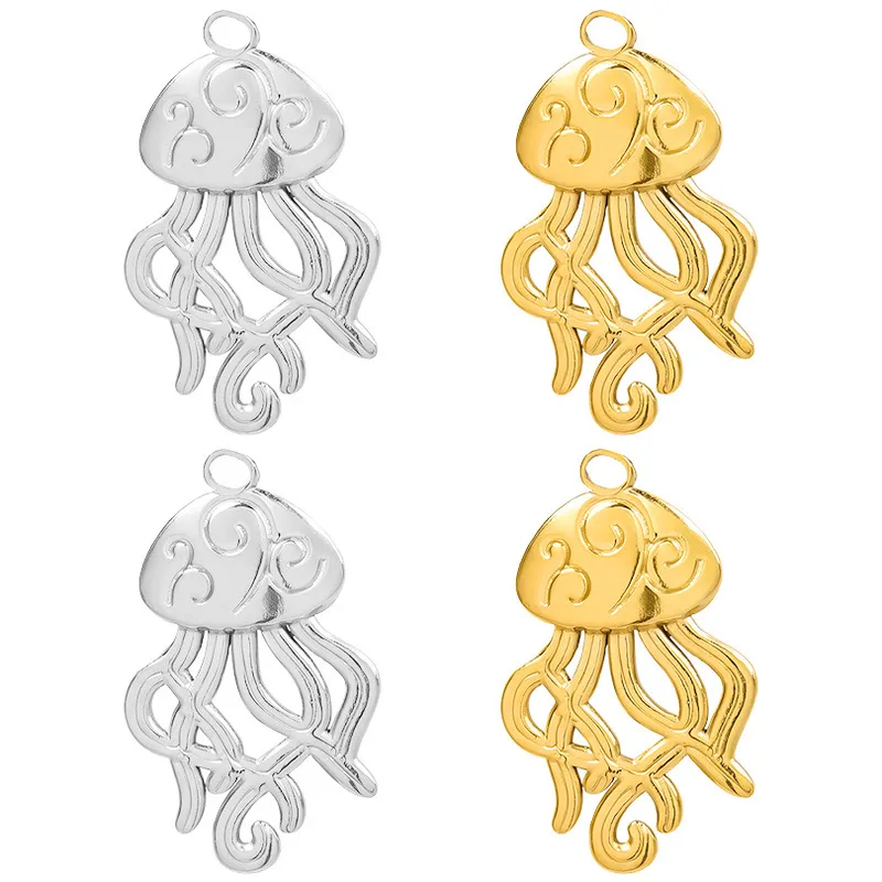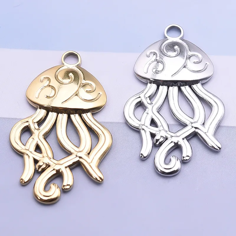 Wholesale 1 Piece 20 * 33mm Hole 2~2.9mm 304 Stainless Steel 18K Gold Plated Jellyfish Polished Pendant