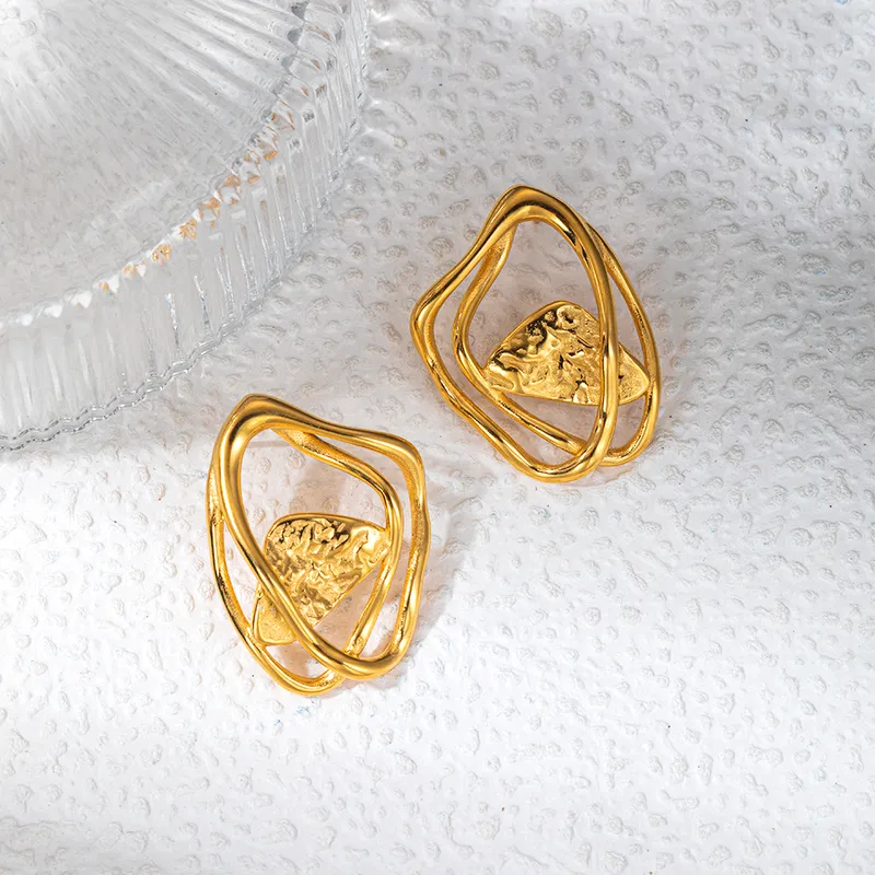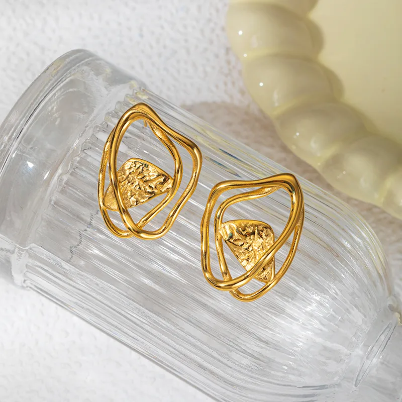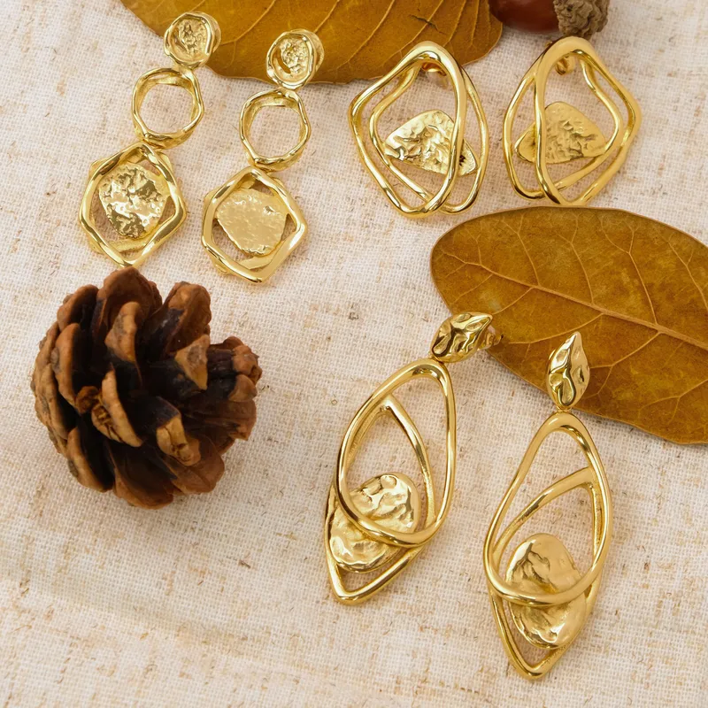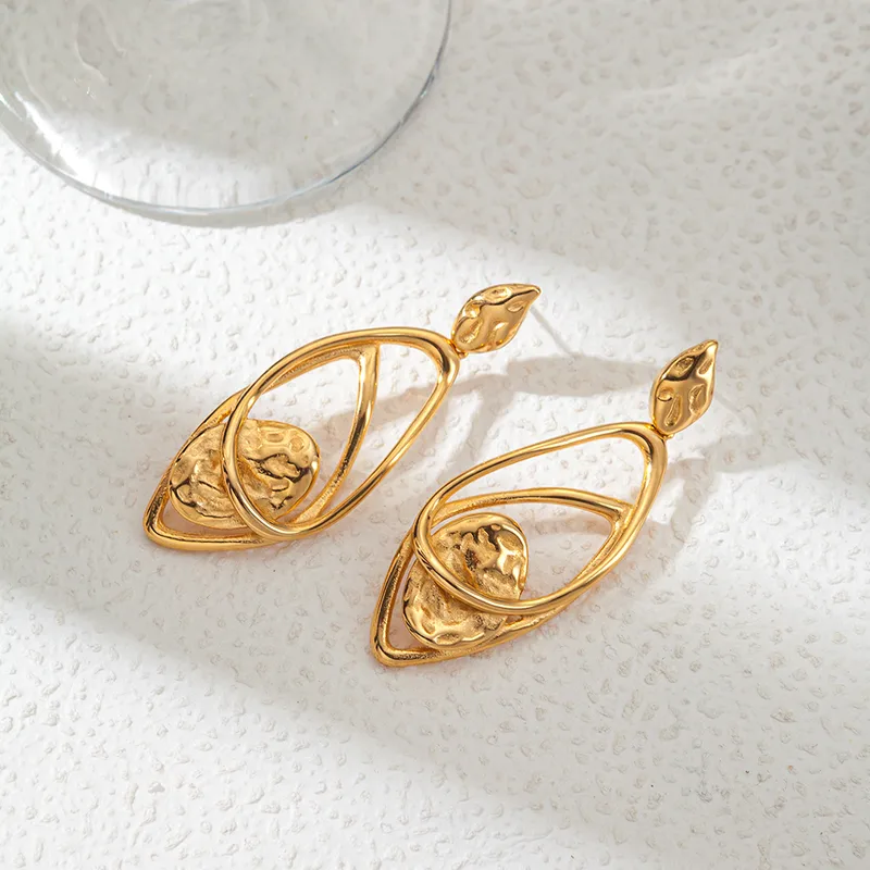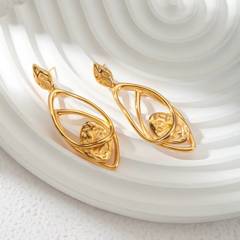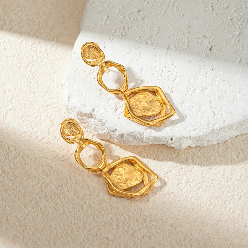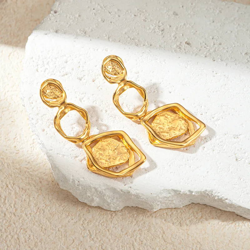 Wholesale 1 Piece Sweet Artistic Round Rhombus Patchwork Plating Hollow Out 304 Stainless Steel 14K Gold Plated Drop Earrings