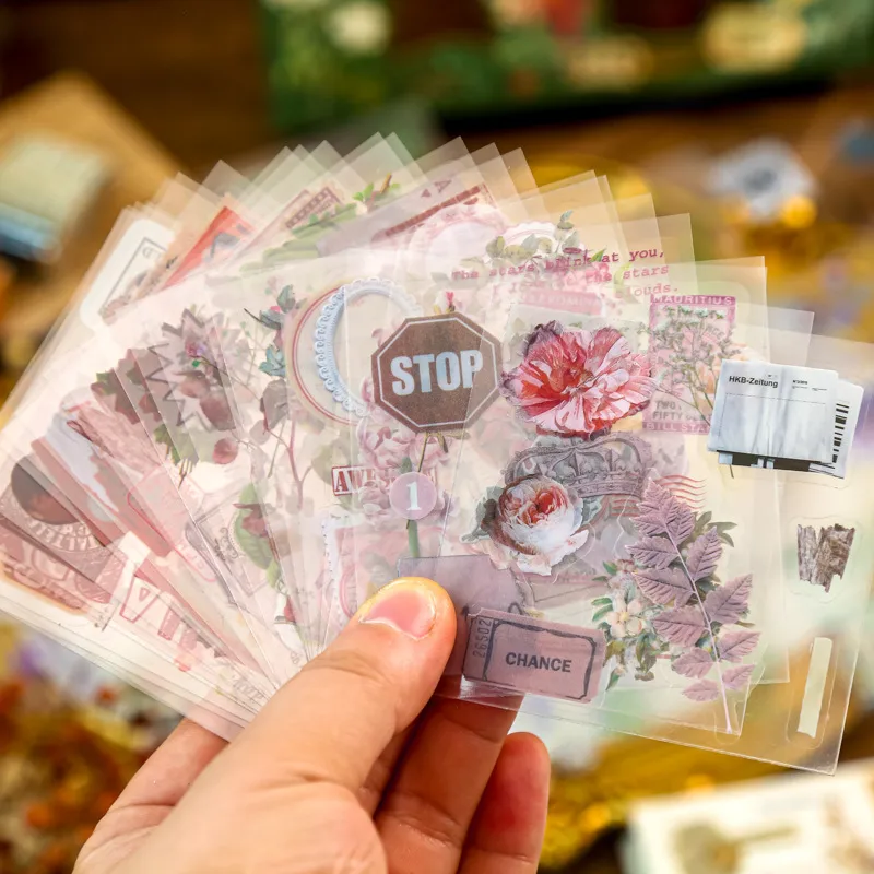 1 Set Flower Butterfly School Graduation PET Retro Handmade Stickers