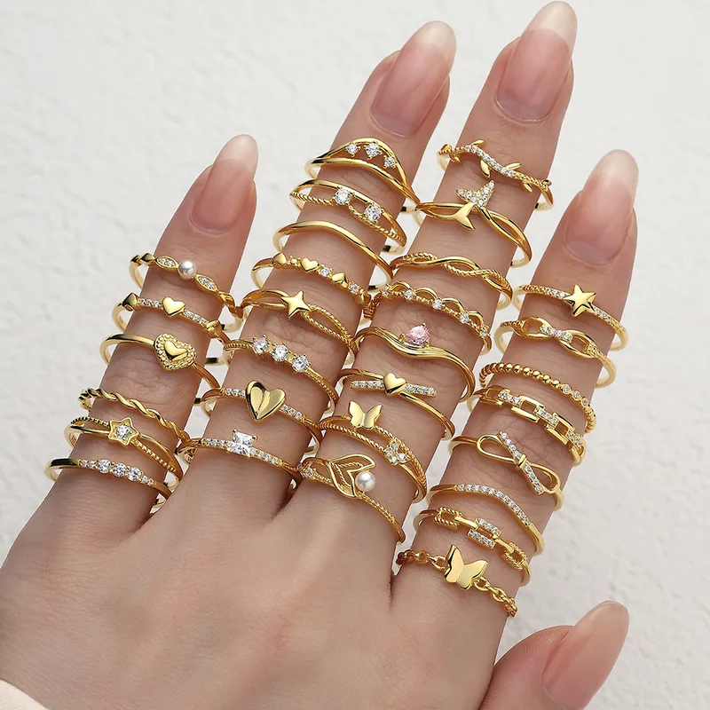 Wholesale 18K Gold Plated Sterling Silver Zircon Square Rings