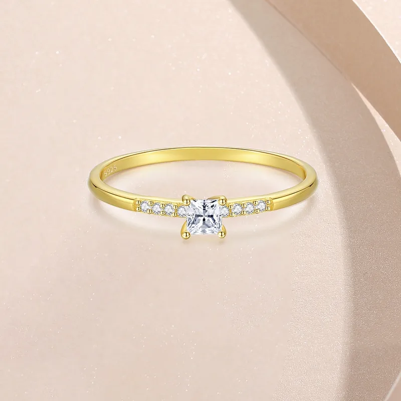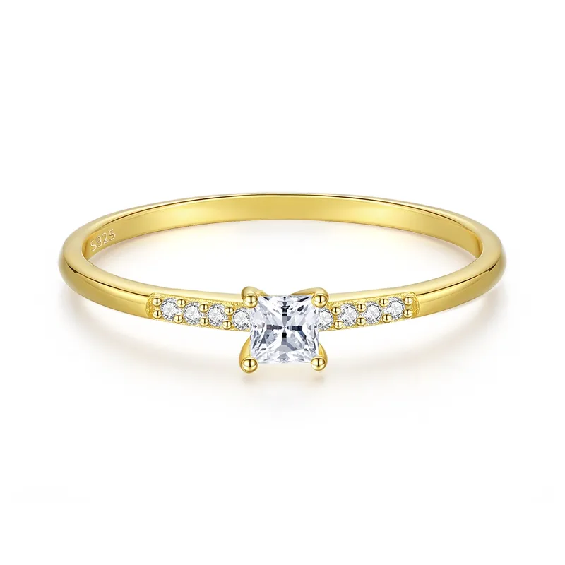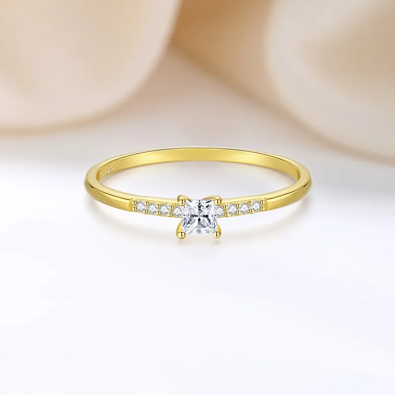 18K Gold Plated Sterling Silver Zircon Square Rings
