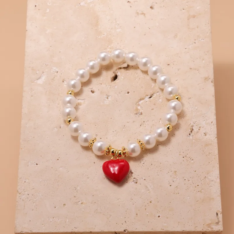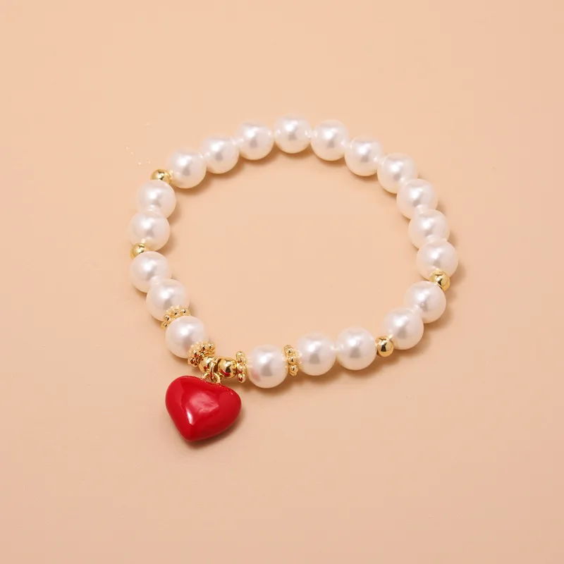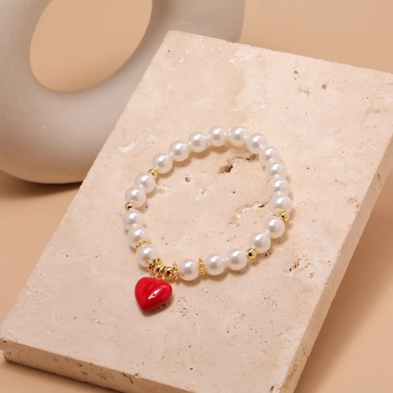 Wholesale 1PC Faux Pearl Beaded Stretch Bracelet with Heart Pendant for Men Women Yoga Healing Bracelets Jewelry Gift