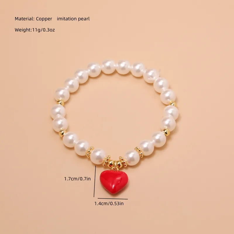 1PC Faux Pearl Beaded Stretch Bracelet With Heart Pendant For Men Women Yoga Healing Bracelets Jewelry Gift