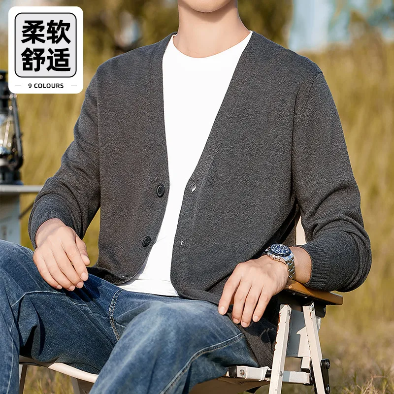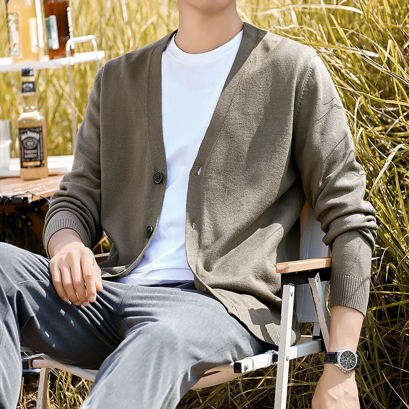 2023 New Cardigan Men's Sweater Spring Autumn Knitwear Coat Loose All-Match V-neck Outerwear Casual Sweater Popular ~