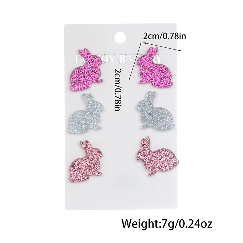 3 Pairs Cute Funny Rabbit Colorful Egg Arylic Ear Studs