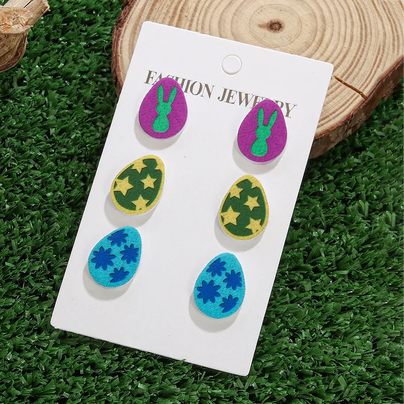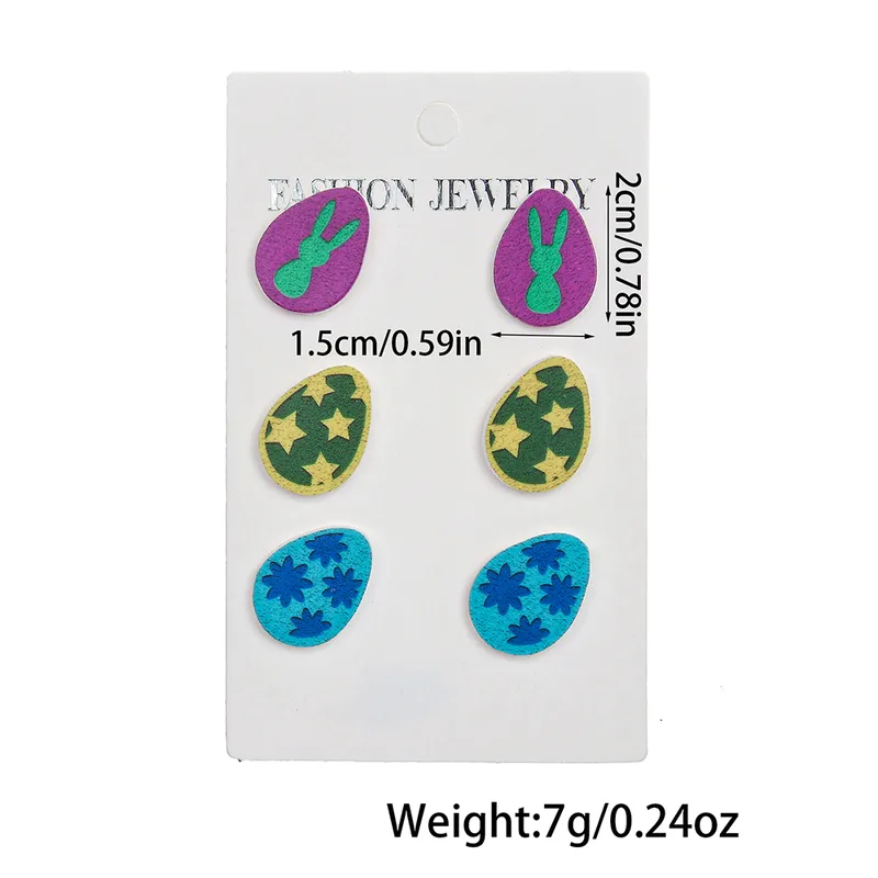 Wholesale 3 Pairs Cute Funny Rabbit Colorful Egg Arylic Ear Studs