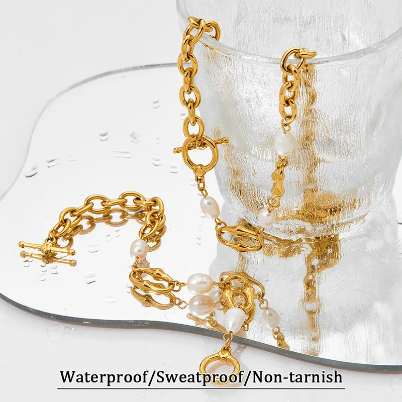 304 Stainless Steel Freshwater Pearl 16K Gold Plated White Gold Plated Gold Plated IG Style Simple Style Classic Style Polishing Plating Solid Color Bracelets Necklace