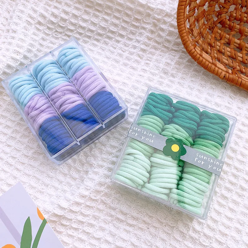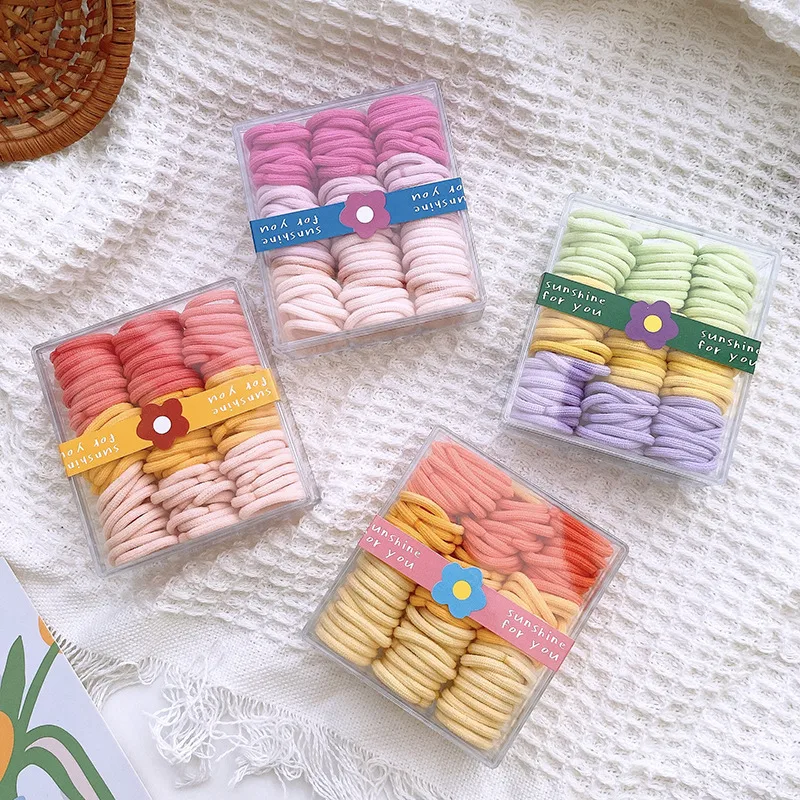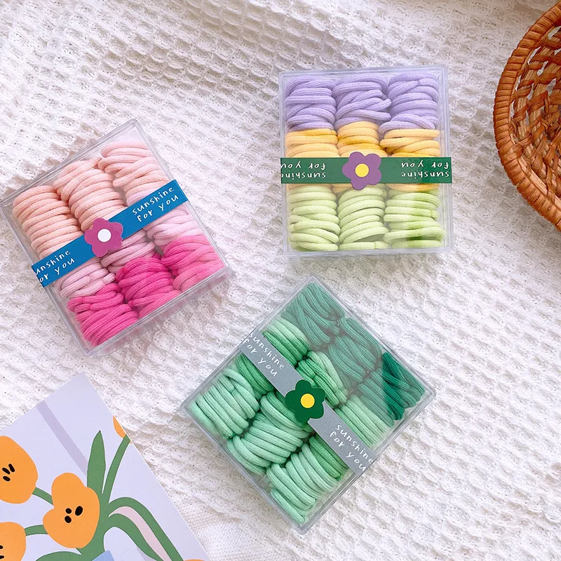 90 PCs Boxed Candy Color Color Glossy Surface Without A Scratch High Elastic Finger Hair Ring Basic All-Matching Girls Children Hair Accessories