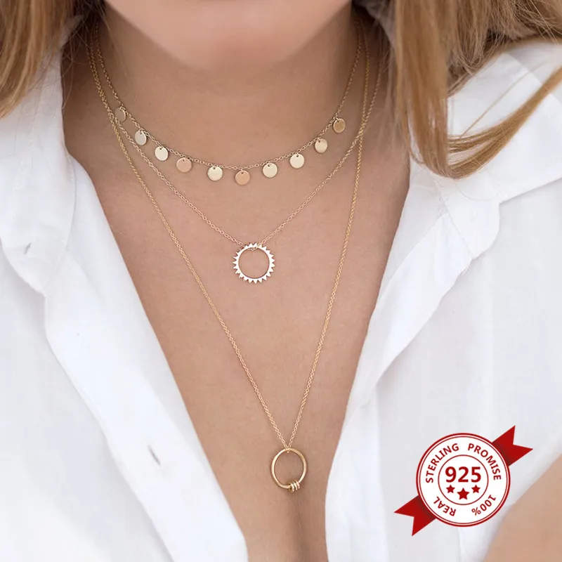 Wholesale 925 Sterling Silver Copper Plating Geometric Pendant Necklace