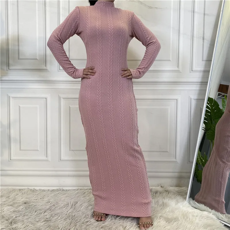 Abaya Dress Long Sleeve Plain Knit Sweater Dress For Women, High Neck Winter Layering Dress 6569