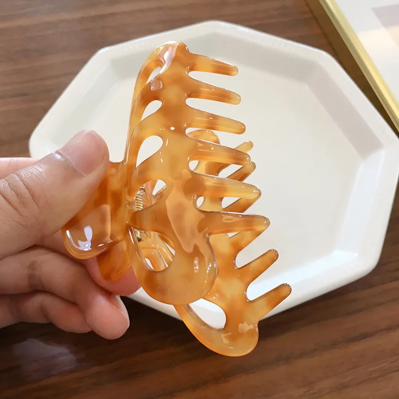 Acetate Hair Accessories Korean Version Of The Large 9cm Clip Caramel Milk Tea Color Temperament Hollow Hair Scratching Girl