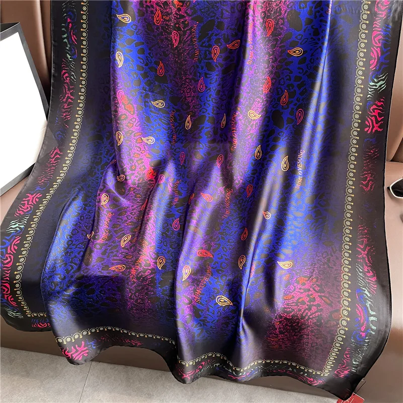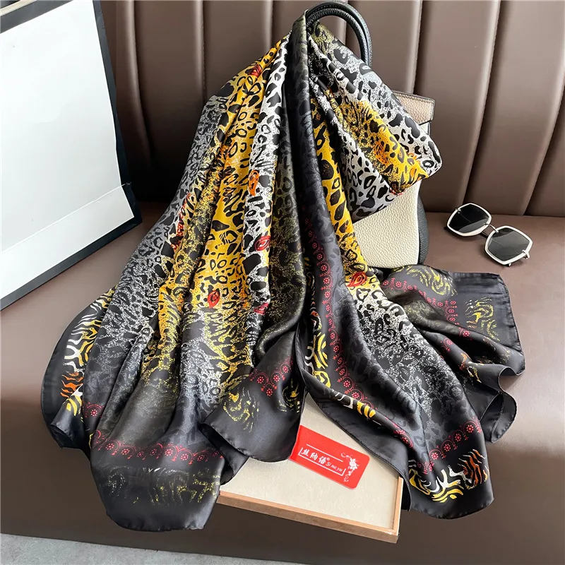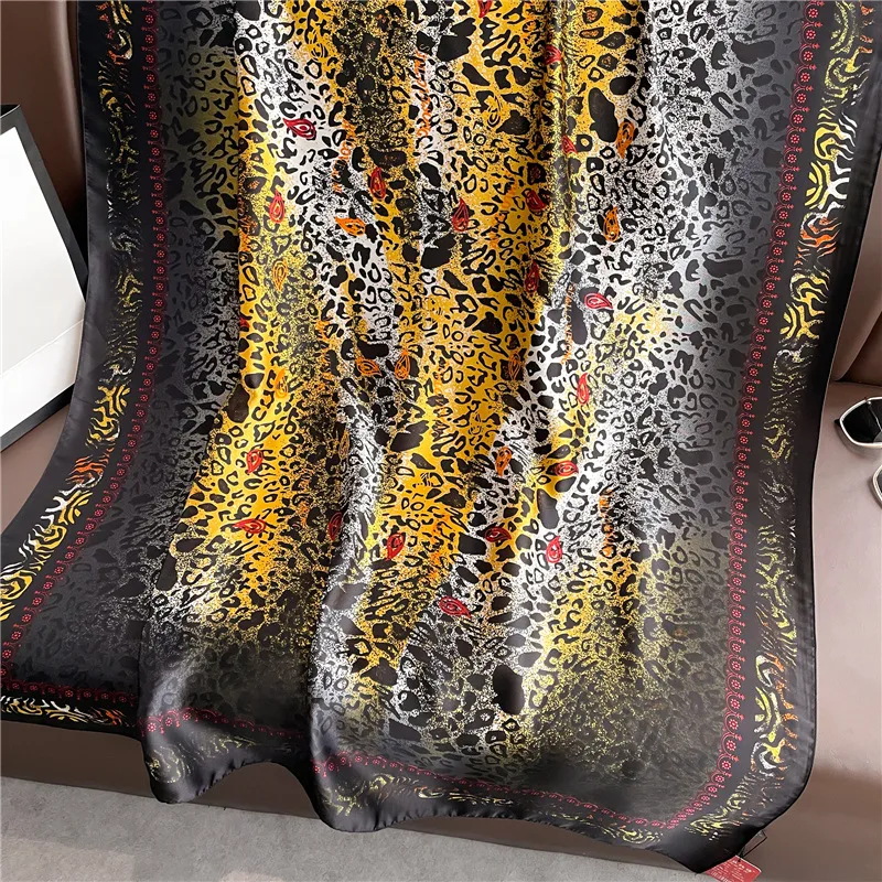 Wholesale adults french style modern style leopard satin printing silk scarf shawl