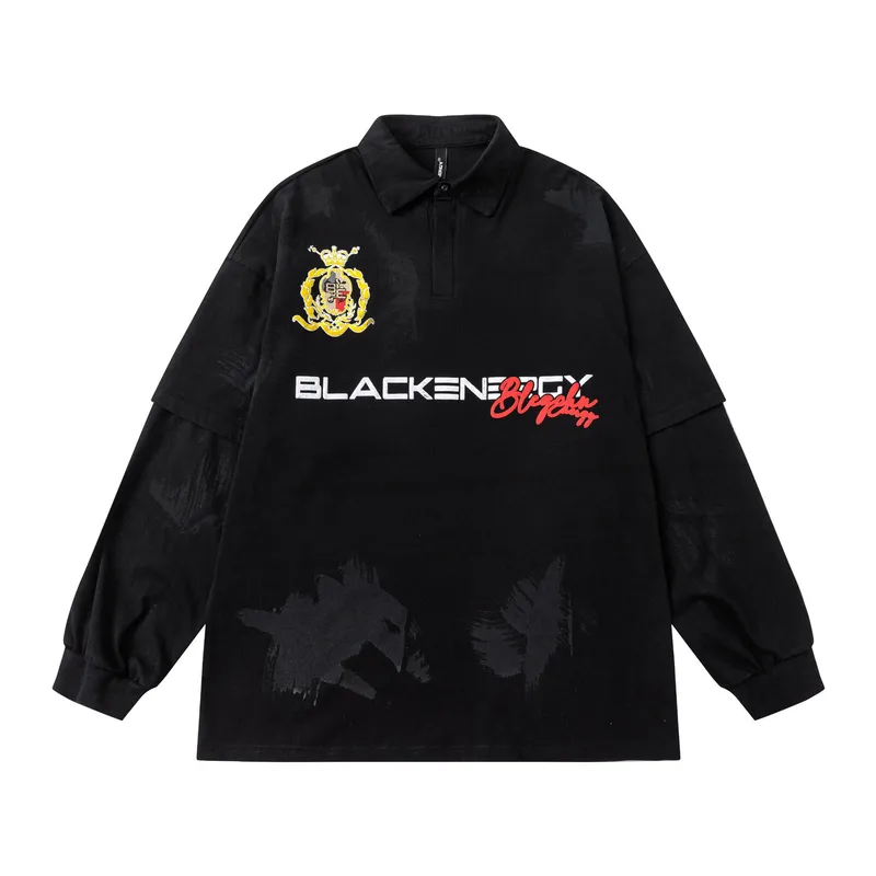 Wholesale Adults Men's Long Sleeve Men's Polo Shirts American Retro Letter