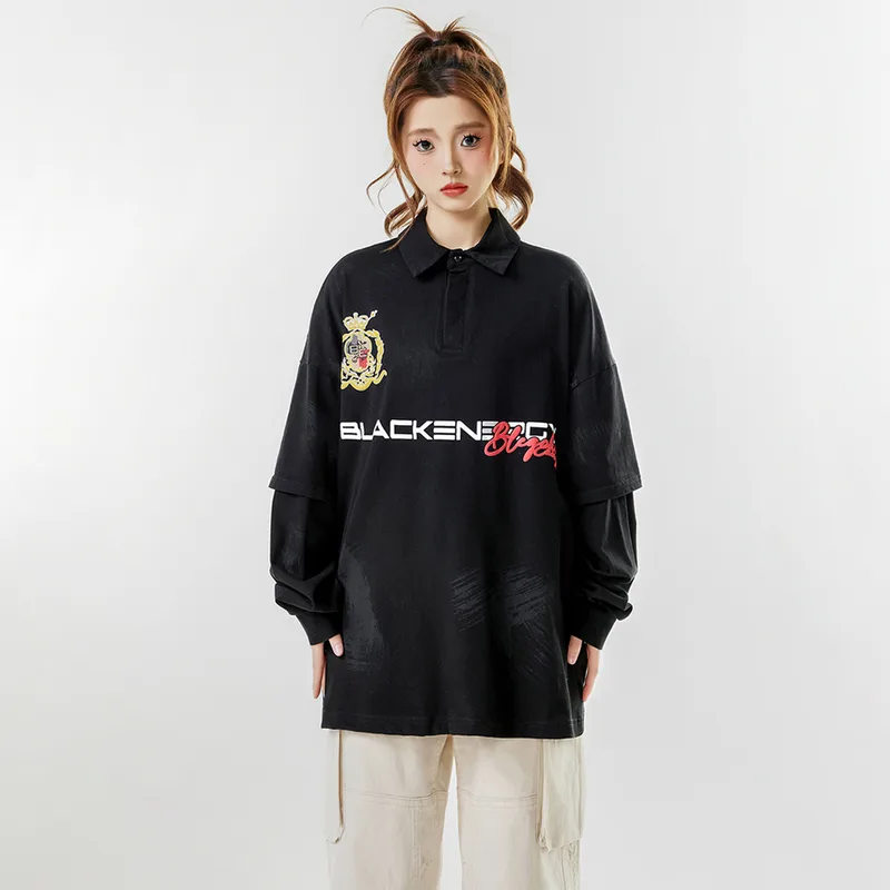 Adults Men's Long Sleeve Men's Polo Shirts American Retro Letter