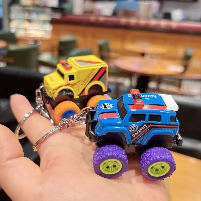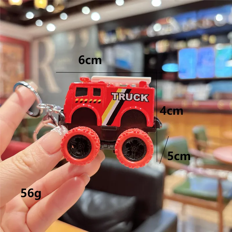 Alloy Cartoon Big Wheel Car Model Key Chain Q Version Model Fire Truck Engineering Car Children's Toy Car Batch