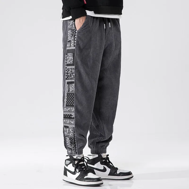 Wholesale Autumn New Chinese Style National Fashion Corduroy Men's Casual Pants Cashew Flower Stitching New plus size Sports Pants