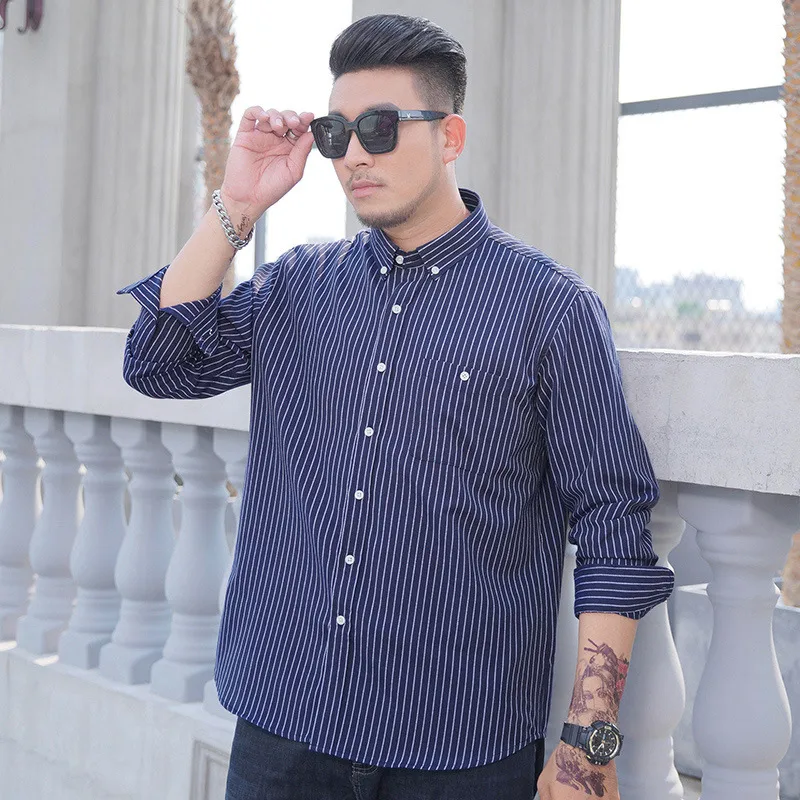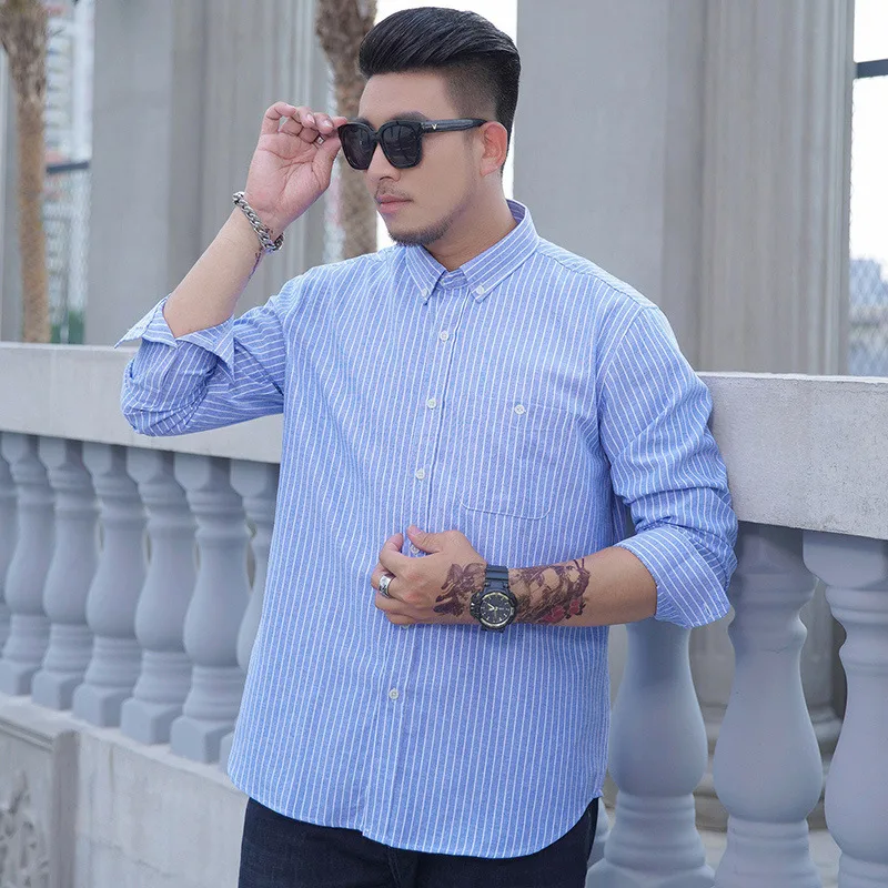 Autumn New Plus Size Men's Long Sleeve Shirt Business Casual Oxford Striped Shirt Men's Plus Large Top