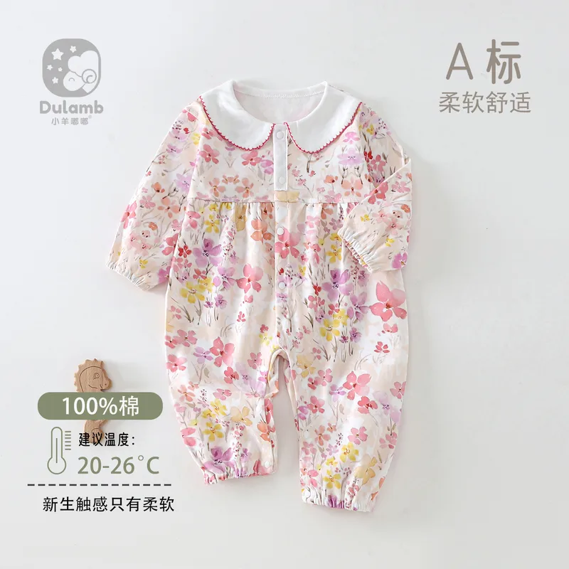 Wholesale Baby's jumpsuit spring and autumn clothes lace collar long sleeve cotton newborn baby girl outfits spring clothes