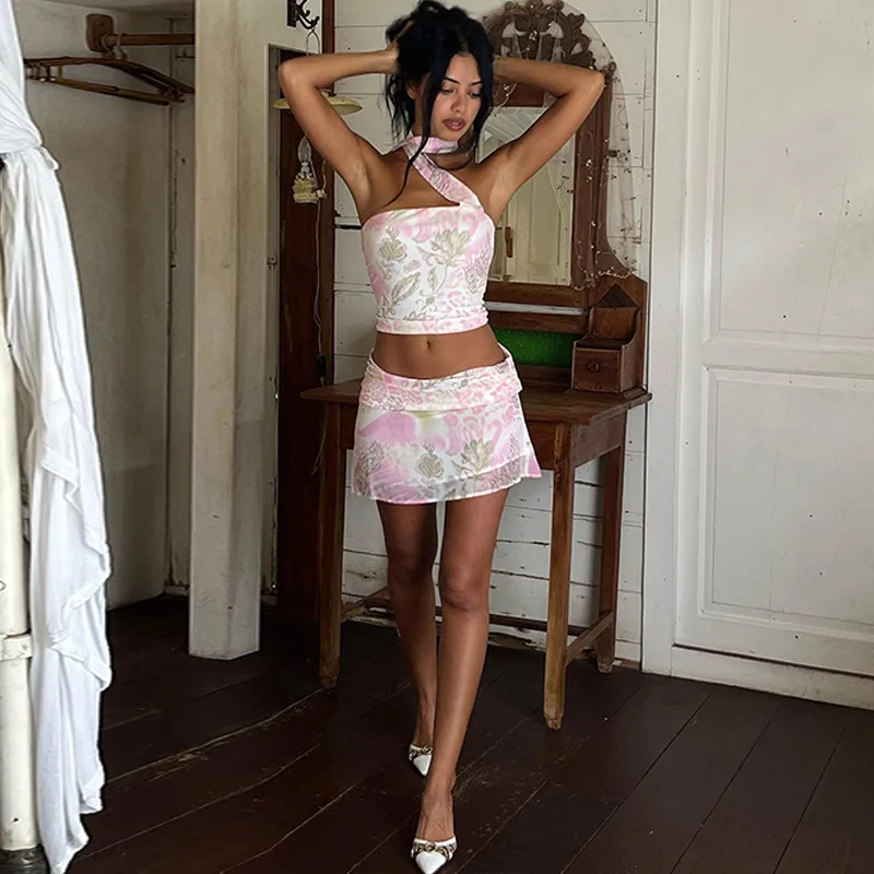 Wholesale Banquet Women's Elegant Sexy Plant Spandex Polyester Skirt Sets Skirt Sets