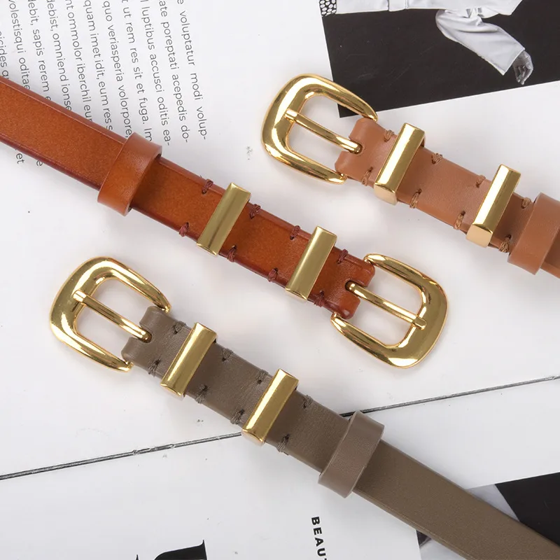 Wholesale Basic Solid Color Two-Layer Cowhide Alloy Leather Women's