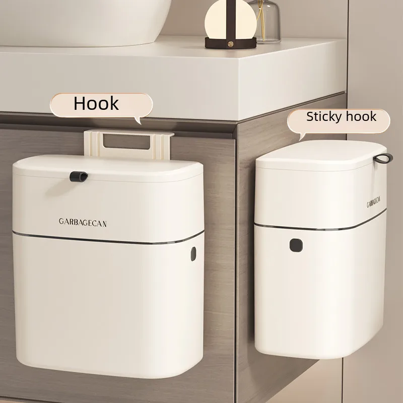 Bathroom Wall Hanging Trash Can Household High-looking Toilet Large Hanging Square Paper Basket With Lid Flip