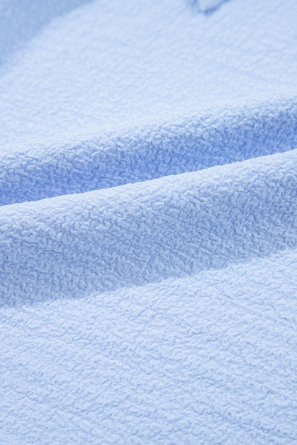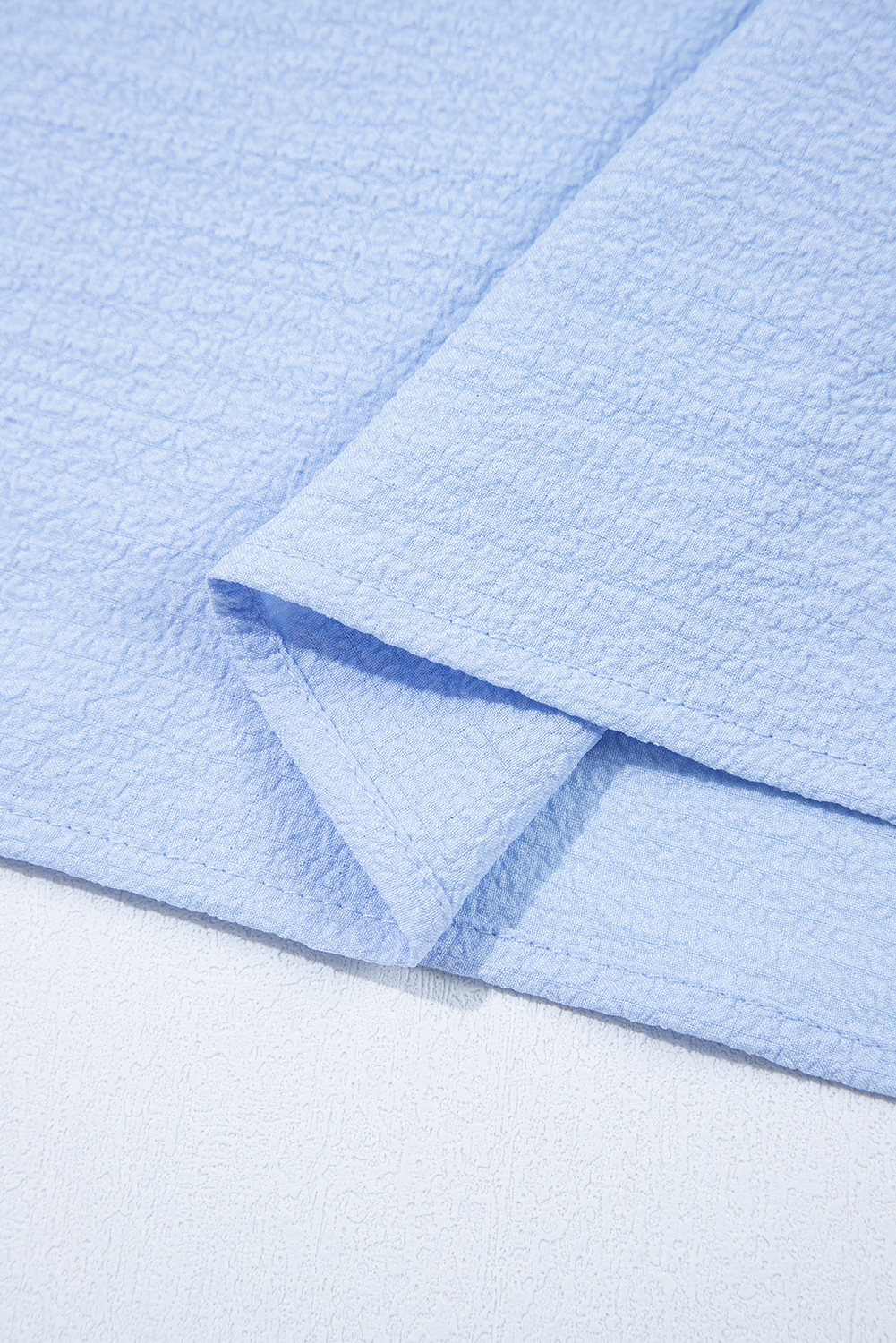 Beau Blue Textured Bow Knot Frilled Butterfly Sleeve Blouse